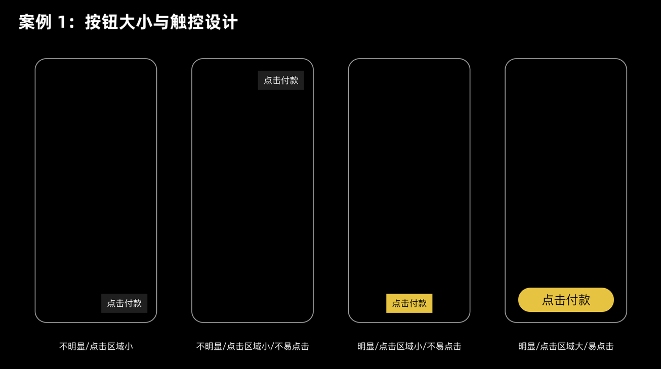 比如支付頁面的 “確認(rèn)付款” 按鈕,幾乎所有 APP 都會把它設(shè)計成頁面中最大、最醒目的元素,不僅尺寸足夠,還會放在拇指容易觸及的區(qū)域(如手機下半屏)。這樣一來,用戶無需猶豫就能快速點擊,既減少誤操作風(fēng)險,也間接提升了支付轉(zhuǎn)化率。
