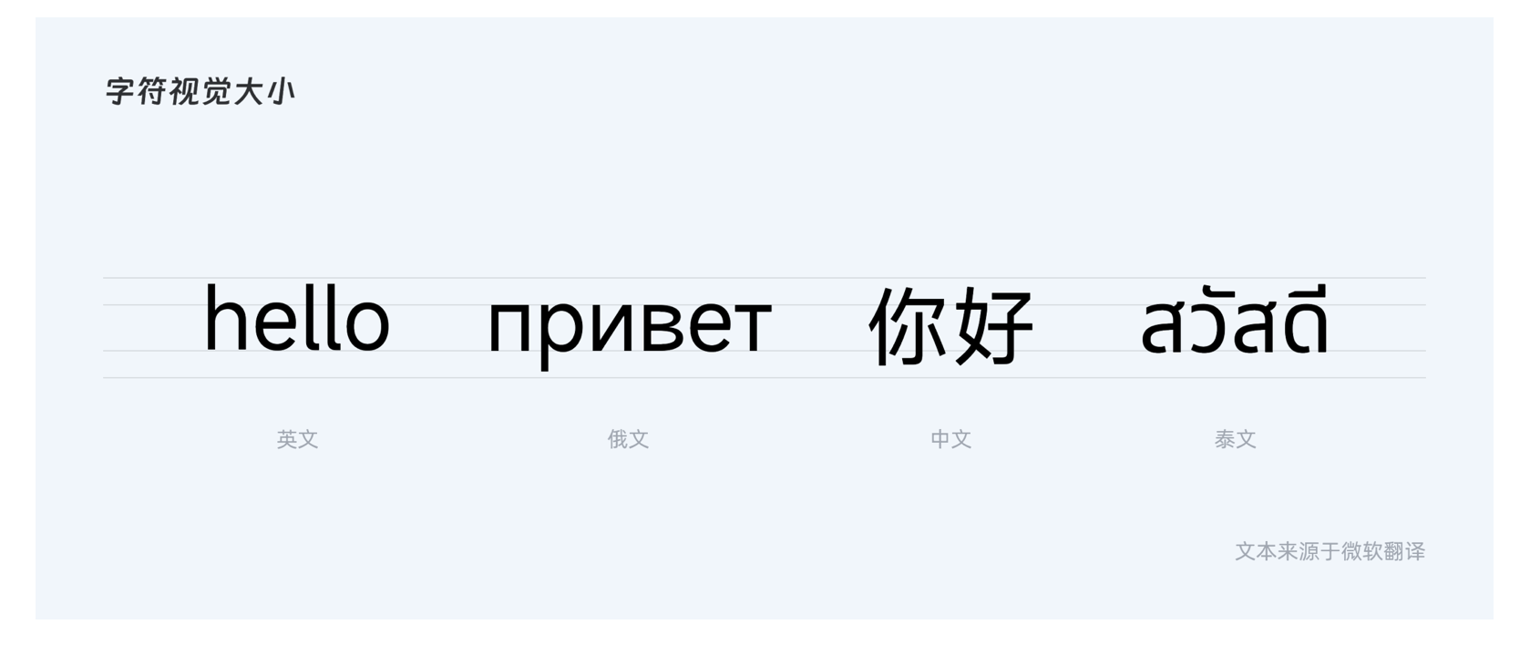 - 字重克制:中文支持 6 種字重(Ultralight 到 Semibold),但俄文、泰文可能僅支持 3 種,過多字重會(huì)導(dǎo)致 “語言切換后層級(jí)丟失”(如中文 “細(xì)體標(biāo)題” 切換到俄文變成 “常規(guī)體”)。